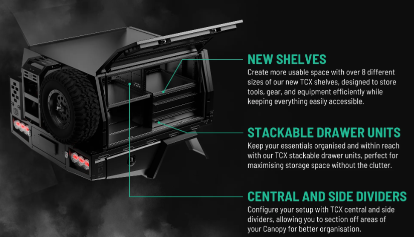 A single cab canopy Perth setup needs workable access, or the layout becomes frustrating. TCX canopy Perth designs use side gullwing doors so you can reach tools or gear from the ground without climbing in. Rear access is planned with equal care, setting drawers or storage at heights where the tailgate and doors clear each other.